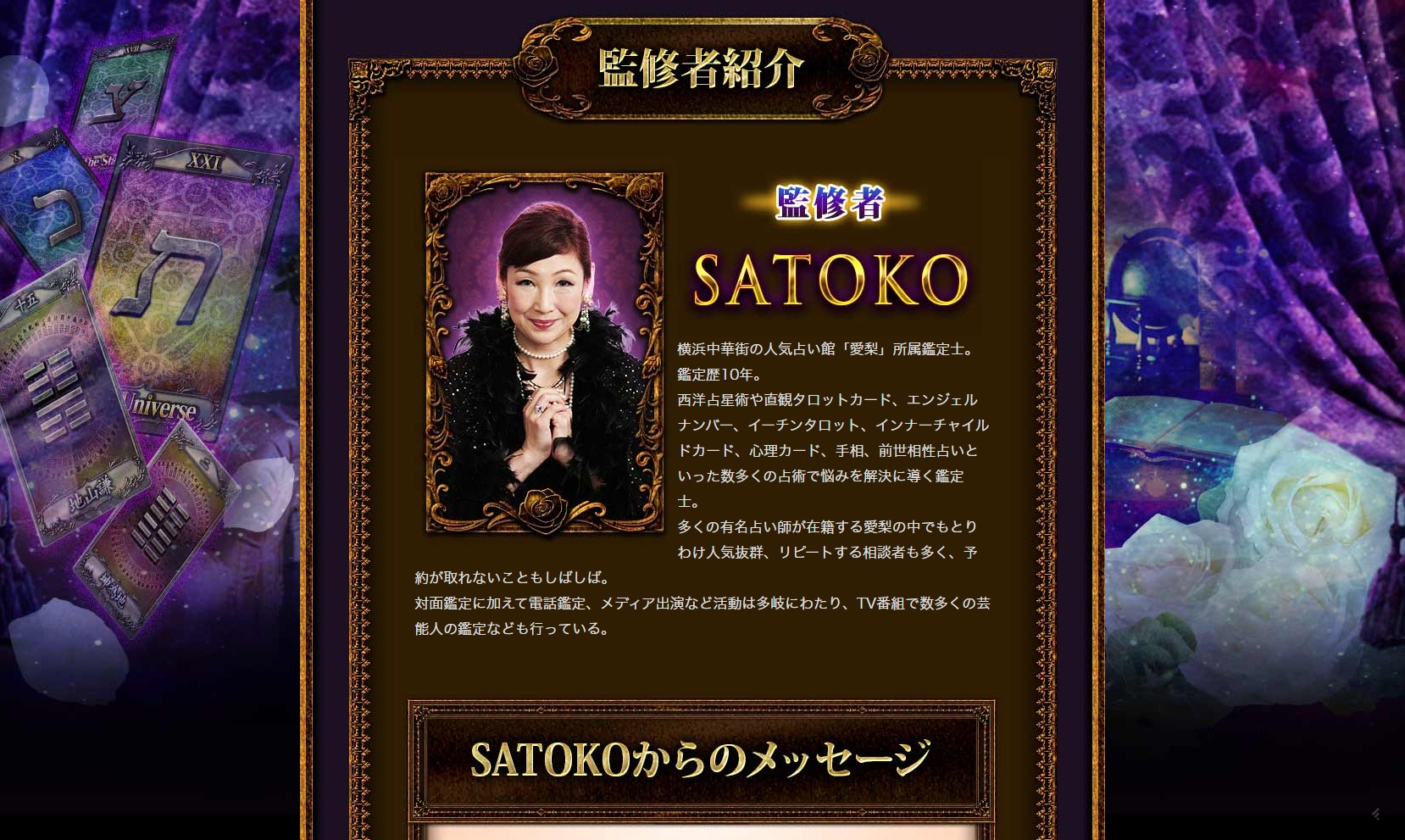 楽天占い:https://uranai.rakuten.co.jp/fortuneteller/satoko/