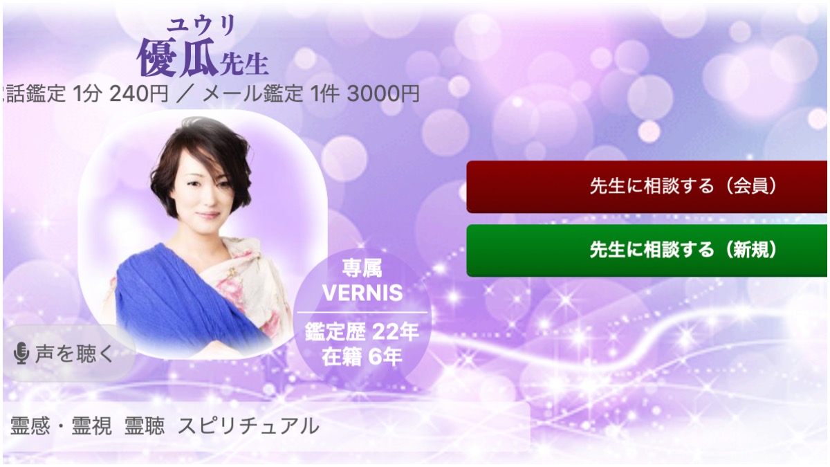 電話占い師 氏名  | 優瓜(ゆうり)先生 |